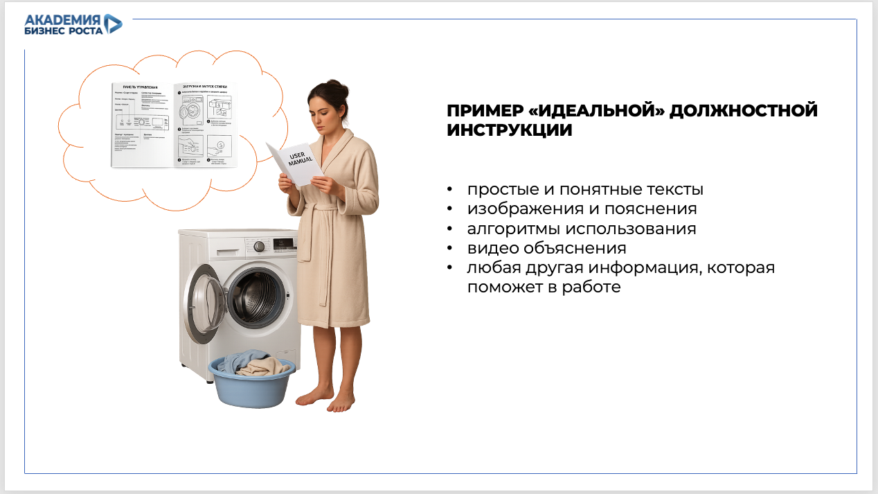 По сути, это и есть должностная инструкция для «оператора стиральной машины».
